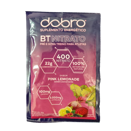O BT Nitrato Pink Lemonade com Citrulina Sachê Dobro é um suplemento com 25g de carboidratos e 400mg de nitrato proveniente da beterraba. Produtos de nutrição esportiva ricos em nitrato podem ter um impacto direto na eficiência energética e, como resultado, melhorar o desempenho do atleta, através do aumento de óxido nítrico e consequente melhora da circulação e redução do custo de oxigênio durante o exercício.