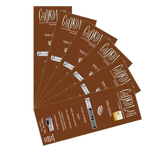 Kit 6x: chocolate 70% cacau com açúcar demerara orgânico chokolah 70g