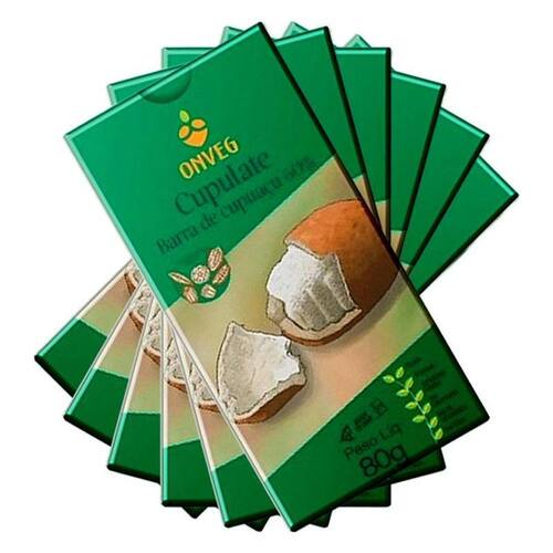 Kit 6x: cupulate 60% cupuaçu com açúcar demerara onveg 80g O cupulate 60% cupuaçu com açúcar demerara onveg é uma barra semelhante ao chocolate, porém feita com as amêndoas do cupuaçu.