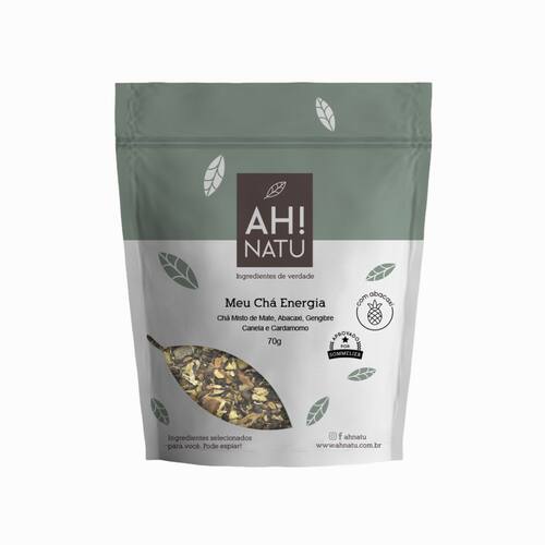 Chá Misto Meu Chá Energia Energizante e Termogênico Ah! Natu é um blend especial que reúne Mate tostado, Abacaxi, Gengibre, Canela, Cravo e Cardamomo, possui sabor marcante das especiarias, com ação termogênica, além de auxiliar na digestão.
