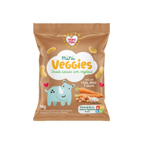 Feito com ingredientes 100% naturais, integrais e sem gordura trans ou aditivos artificiais, o Snack Infantil Mini Veggies Feijão e Cenoura Nhami Mami é perfeito para um lanchinho saudável e equilibrado.