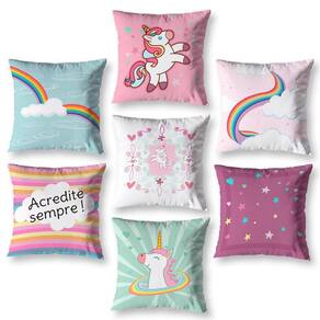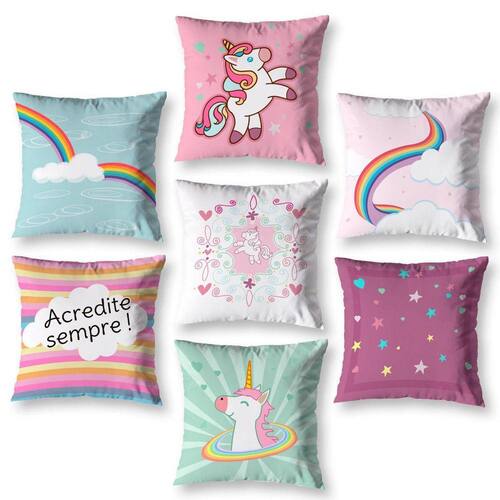Kit 7 Almofadas Cheias 40Cm X 40Cm Estampadas Unicórnio