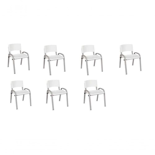 Kit 7 Cadeira Iso Infantil Creche, Base Cinza Branco