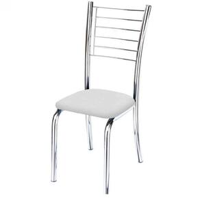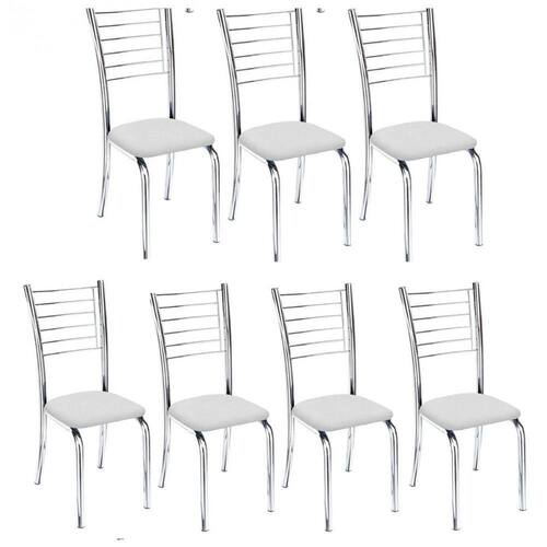 Kit 7 Cadeiras De Jantar Lara Cromada Para Cozinha Assento Corino Branco - Aurora Line