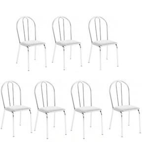 Kit 7 Cadeiras Lisboa Cromada Para Cozinha Ou área Gourmet-assento Sintético Branco