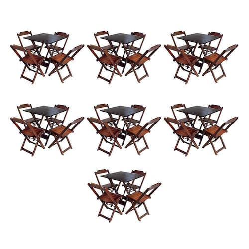 Kit 7 Conjuntos De Mesa Dobravel Com 4 Cadeiras De Madeira 70x70 Para Restaurante E Bar - Imbuia