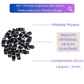 Kit 7 Firmas Azeitona 35x15mm Preto e Branco Murano Guias