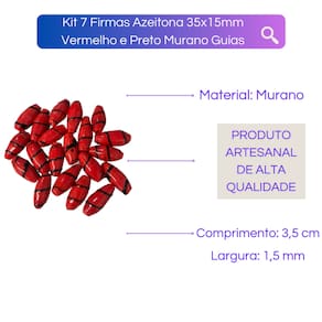Kit 7 Firmas Azeitona 35x15mm Vermelho e Preto Murano Guias