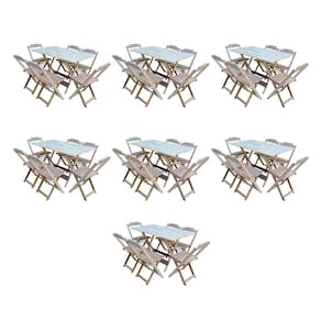 Kit 7 Jogos de Mesa Dobravel com 6 Cadeiras de Madeira 120x70 para Restaurante e Bar - sem Pintura - Marrom