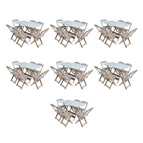 Kit 7 Jogos De Mesa Dobravel Com 6 Cadeiras De Madeira 120x70 Para Restaurante E Bar - Sem Pintura