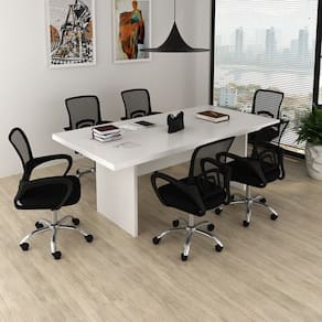 Essa mesa de reuniões é ideal para desempenhar tarefas diárias de trabalho, também como protagonista da sala de reuniões ela acomoda 8 pessoas. Suporta inúmeros objetos que você desejar é muito resistente, sustentando 25 kg de peso. É totalmente fabricada no brasil e além de seu bonito visual é feito com madei Suporta Até (kg): 120 kg Acabamento: BP Altura do Conjunto: 85 cm Ambiente: Escritório Ambiente Principal: Escritório Cor: Branco/Preto Informação Complementar: 1x Mesa para Escritório Reunião 100x200cm ME4119 Branco Largura: 200 cm Altura: 74 cm Profundidade: 100 cm Necessita Montagem: Sim