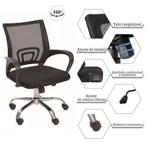 1x Cadeira para Escritório Diretor Tela Mesh Tok 3310 Or Design Preto Largura: 59,5 cm Altura: 85 cm Peso: 8,5 kg Profundidade: 49 cm Necessita Montagem: Sim