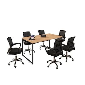 Kit 7 Peças com Uma Mesa de Reunião e 6 Cadeiras de Escritório Tela Mesh Espresso Móveis Preto