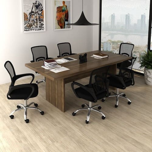 Kit 7 Peças com Uma Mesa de Reunião e 6 Cadeiras de Escritório Tela Mesh Espresso Móveis Nogal - Marrom