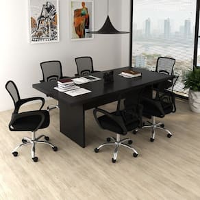 Essa mesa de reuniões é ideal para desempenhar tarefas diárias de trabalho, também como protagonista da sala de reuniões ela acomoda 8 pessoas. Suporta inúmeros objetos que você desejar é muito resistente, sustentando 25 Altura do Conjunto: 91 cm Ambiente: null Ambiente Principal: Escritório Cor: Preto Informação Complementar: 1x Cadeira de Escritório Diretor Tela Mesh Base Cromada Santiago Preto Largura: 58 cm Altura: 91 cm Peso: 8 kg Profundidade: 51 cm Necessita Montagem: Sim