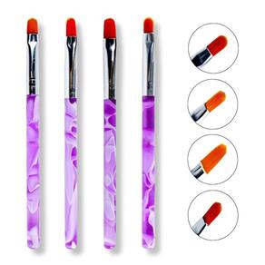 Kit 7 Pincéis Língua De Gato Marmorizado Rosa Manicure Unhas