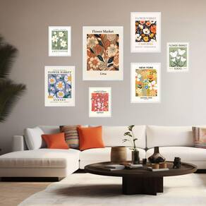 Kit 7 quadros decorativos flower market Moldura: madeira preta Informações do produto tire todas as suas dúvidas no descritivo abaixo: decoração para quarto, sala, cozinha, escritório, área gourmet e muito mais. Chega de paredes vazias medidas - kit composto por 7 quadros, sendo 3 quadros com medida 18x24cm, 3 quadros com 24x33cm e 1 quadro com medida 33x45cm. Material do papel - papel fotográfico brilhante de altíssima resolução acabamento - todos os quadros são acompanhados de uma película de acetato para proteção da imagem. - os quadros são embalados de forma segura com plástico bolha com camada dupla de acordo com o tamanho dos quadros. Garantia - garantia de 3 meses. Meu quadro chegou. Como posso fixá-lo Você precisa apenas de um martelo e um prego, pois os quadros já vão acompanhados de penduradores. Esta é a forma mais indicada. Caso prefira, você pode utilizar uma fita dupla face neste caso, sugerimos de alta qualidade para evitar que descole e seu quadro caia . Como posso limpar meu quadro A limpeza é feita como um móvel comum da sua casa. Apenas um pano seco ou espanador são suficientes para tal