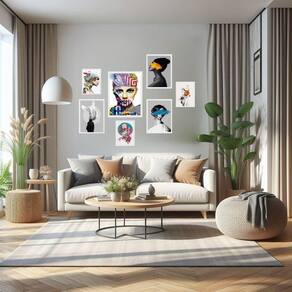 Kit 7 quadros decorativos mulheres arte surrealismo Moldura: madeira branca Informações do produto tire todas as suas dúvidas no descritivo abaixo: decoração para quarto, sala, cozinha, escritório, área gourmet e muito mais. Chega de paredes vazias medidas - kit composto por 7 quadros, sendo 3 quadros com medida 18x24cm, 3 quadros com 24x33cm e 1 quadro com medida 33x45cm. Material do papel - papel fotográfico brilhante de altíssima resolução acabamento - todos os quadros são acompanhados de uma película de acetato para proteção da imagem. - os quadros são embalados de forma segura com plástico bolha com camada dupla de acordo com o tamanho dos quadros. Garantia - garantia de 3 meses. Meu quadro chegou. Como posso fixá-lo Você precisa apenas de um martelo e um prego, pois os quadros já vão acompanhados de penduradores. Esta é a forma mais indicada. Caso prefira, você pode utilizar uma fita dupla face neste caso, sugerimos de alta qualidade para evitar que descole e seu quadro caia . Como posso limpar meu quadro A limpeza é feita como um móvel comum da sua casa. Apenas um pano seco ou espanador são suficientes para tal Ean: 7894157192076