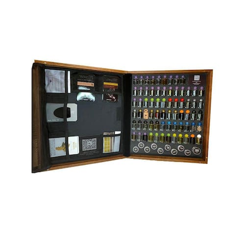 O kit Master com 79 aromas do vinho é uma ferramenta para treinar a memória olfativa, vai ajudá-lo a descobrir e estudar todas as estampas da degustação de vinhos, de maneira prática, fácil e lúdica. Um jogo divertido e muito educativo. Desenvolvido pela Sommelire Daniella Romano, especialista em análise sensorial. Único kit que traz materiais para você estudar as 3 etapas da degustação: análise visual, análise olfativa e análise gustativa. Descubra os segredos dos profissionais.Caixa em madeira certificada79 frascos com aromas do vinho.Baralho ilustrado com cartas especificando os aromas e com as famílias olfativas divididas por cores.Baralho das Uvas.Cartas com as cores e nuances dos vinhos.01 frasco com café em grãos   para limpar o olfato .Instruções de uso, dicas de degustação, harmonização e curiosidades sobre o vinho.Ficha relacionando os vinhos a seus aromas.Fitas olfativas. As Coleções de Aromas são jogos que exercitam e desenvolvem a memória olfativa.Na degustação a importância do olfato é de 70%, portanto é possível discernir se uma bebida é de boa qualidade ou não antes mesmo de experimentá-la. O vinho, a cerveja e a cachaça possuem diferentes perfumes característicos, mais ou menos intensos, incorporados ao longo de suas vidas durante o processo de fabricação. Desenvolvendo a memória olfativa aprendemos a identificar e a nomear aromas e saber reconhecê-los nos permite compreender como o espírito da bebida contagia o nosso e porque cada uma delas nos causa novas e diferentes sensações.Para que servemAs coleções de aromas ensinam as delícias da degustação ao mesmo tempo em que nos distraem e aprimoram nossos conhecimentos. Habilitam-nos a provar uma bebida com mais prazer, a descobrir qual nosso vinho, cerveja ou cachaça favorito, a escolher a melhor bebida para cada ocasião e a harmonizá-la com nossos pratos e aperitivos prediletos. Também explicam a terminologia usada para descrever as impressões e sensações experimentadas na degustação permitindo-nos participar de degustações com outros especialistas. Podemos jogar como preferirmos: sozinhos, com familiares ou com amigos; de qualquer forma os jogos são relaxantes e transformam o aprendizado em entretenimento. Experimente, você vai gostarComo usarÉ simples, basta seguir as instruções dos manuais que acompanham os jogos. As explicações a seguir, embora em grande parte apropriadas a todas as coleções, são baseadas na Nariz do Vinho Connaisseur, utilizada em cursos de sommeliers e de enologia por ser a nossa coleção mais profissionalizante.1. Não use perfume, especialmente nas mãos, pois pode alterar sua percepção olfativa.2. Tenha ao seu alcance lenços descartáveis, um bloco de notas e uma caneta.3. Escolha um frasco da caixa sem olhar o número do vidrinho, abra-o com o lenço de papel e deixe a tampa à parte no lencinho.4. Umedeça uma das fitas olfativas que acompanham a coleção na essência aromática escolhida.5. Aproxime a fita úmida do nariz e inale suavemente. Preste atenção as suas sensações e reações ao aroma e procure descobrir do que é. Tome nota dessas primeiras impressões.6. Pegue o baralho ilustrado que acompanha a coleção, verifique o número do frasco, retire do baralho a carta a ele correspondente e coloque-a junto à fita umedecida. Compare o aroma com a descrição na carta e leia suas anotações, elas podem ser surpreendentes7. Não repita as inalações com mais que 5 ou 6 essências consecutivamente, pois o olfato se satura rápido.8. Sempre neutralize o olfato entre uma inalação e outra cheirando o café em grãos do frasco maior.9. Pratique quando estiver relaxado ou desejando relaxar.Teste seus conhecimentos