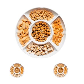 Acabamento impecável, design clean com 5 cavidades para montar uma mesa com várias variedades de petiscos e surpreender seus convidados.