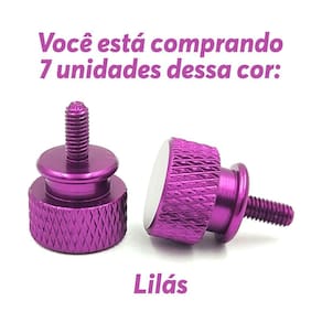 Kit 7x parafuso para pc gamer colorido gabinete computador Cor: lilás Apresentamos o parafuso colorido gamer em liga de alumínio - o toque perfeito de estilo e funcionalidade para elevar o seu setup projetado especialmente para os entusiastas de jogos e criadores de conteúdo que buscam personalizar cada detalhe do seu espaço de jogo, este conjunto de parafusos oferece mais do que apenas fixação; ele é uma declaração de personalidade.