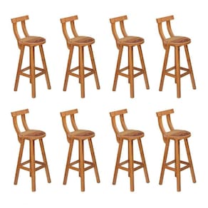 Kit 8 Banquetas Alta Com Encosto Madeira Maciça - Natural - Marrom