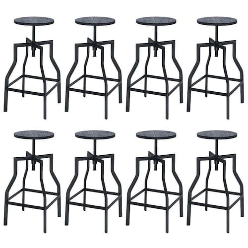 Kit 8 Banquetas Altas Retro Loft Bancada Industrial Turner Preto Kit 8 banquetas altas retro loft bancada industrial Turner Preto - Características Gerais do Produto: - Material do assento: Madeira - Material da base: Aço pintado - Diâmetro do assento: 28 cm - Altura do assento (min-max): 60-78 cm - Limpeza e cuidados: Pano úmido sem aplicação de produtos químicos ou abrasivos - Necessita montagem: Sim Acompanha o produto: - 8 banquetas altas retro loft bancada industrial Turner Garantia: - 90 dias