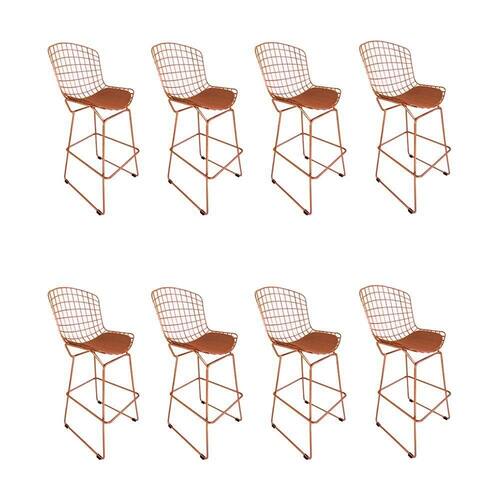 AS IMAGENS SÃO MERAMENTE ILUSTRATIVAS E PODEM SOFRER VARIAÇÕES DE COR E PEQUENOS DETALHES DE ACORDO COM O SEU MONITOR, ILUMINAÇÃO DO AMBIENTE E ATÉ MESMO A SUA PERCEPÇÃO VISUAL.Kit 8 Banquetas Bistrà Bertoia Cobre D70 com Assento Cobre