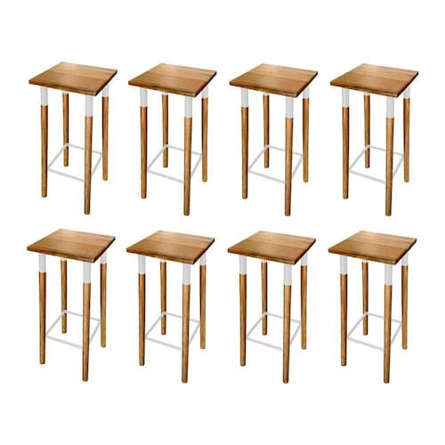 Kit 8 Banquetas Bistro Industrial Colors Ferro E Madeira Maciça - Branca Branco - Blush