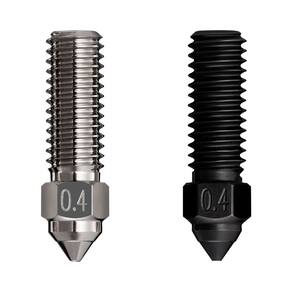 Liga de cobre com alta condutividade térmica, alto fluxo para impressão em alta velocidade: A condutividade térmica da liga de cobre chega a 330W/mk, garantindo que o bico seja aquecido de maneira mais uniforme. O volume é duas vezes maior que os bicos comuns, suportando velocidade de impressão em alta velocidade de 600 mm/s.