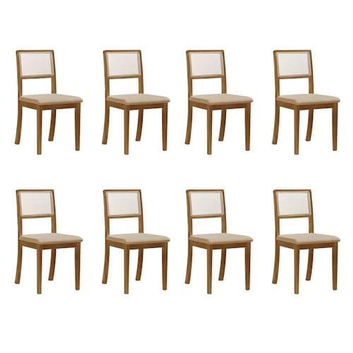 Kit 8 Cadeiras de Jantar Luxo Madeira Maciça Mel Encosto Telinha Palha Estofada Linho Bege Rubi A Cadeira Estofada possui formato anatômico e vai deixar seu ambiente muito mais bonito e sofisticado. Mantendo todo conforto que o móvel precisa ainda conta com enorme elegância. Tipo: Cadeira Modelo: Estofada Cor do Assento: Bege Cor da Base: Mel Tecido: Linho