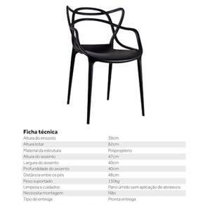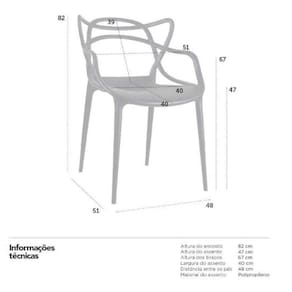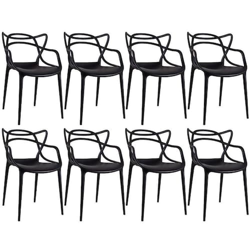 Kit 8 Cadeiras Allegra Polipropileno Area Externa - Preto Modelo: Cadeira Allegra Masters Conhecida no mundo inteiro pelo seu design único e a forma como foi criada a cadeira Allegra Masters é uma homenagem a três cadeiras símbolo da história do design a cadeira Jacobsen de Arne Jacobsen a cadeira Saarinen de Eero Saarinen e a DSR do casal Eames. Os modelos se entrelaçam em uma combinação de curvas dando vida a uma e cativante fusão de estilos. Material da Estrutura: Polipropileno Garantia de 3 meses por defeito de fabricação. Altura Total: 84 cm Altura do Chão Até o Assento: 48 cm Profundidade Interna do Assento: 48 cm Largura Interna do Assento: 53 cm Peso Máx. Recomendado: 120 kgs Peso unitário: 4,2 kgs