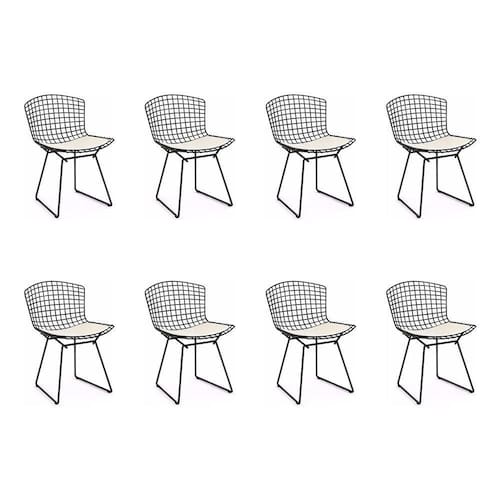 AS IMAGENS SÃO MERAMENTE ILUSTRATIVAS E PODEM SOFRER VARIAÇÕES DE COR E PEQUENOS DETALHES DE ACORDO COM O SEU MONITOR, ILUMINAÇÃO DO AMBIENTE E ATÉ MESMO A SUA PERCEPÇÃO VISUAL.Kit 8 Cadeiras Bertoia Preta com Assento Branco