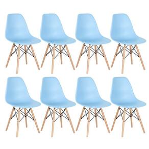 Kit 8 Cadeiras Charles Eames Eiffel Dsw Com Pés De Madeira Clara Azul Claro