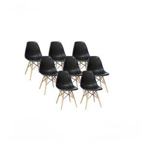 Kit 8 Cadeiras Charles Eames Eiffel Wood Design - Preta Cadeira Eiffel Eames Base Madeira A CADEIRA CHARLES EAMES EIFFEL foi criada nos anos 50, é vencedora do Museu de Nova York da concorrência Design de Mobiliário Low-Cost Arte Moderna Internacional. Sua base é em MADEIRA no formato de uma torre faz com que o ambiente não fique sobrecarregado. Adequa-se perfeitamente para compor conjunto de mesa de jantar ou qualquer outro ambiente em sua casa ou escritório. Ideal para receber amigos e familiares com um toque de elegância e charme. As pernas da cadeira são em madeira e fios de aço preto no qual garantem estabilidade à cadeira.