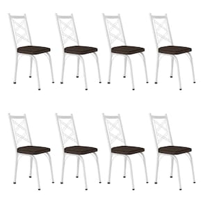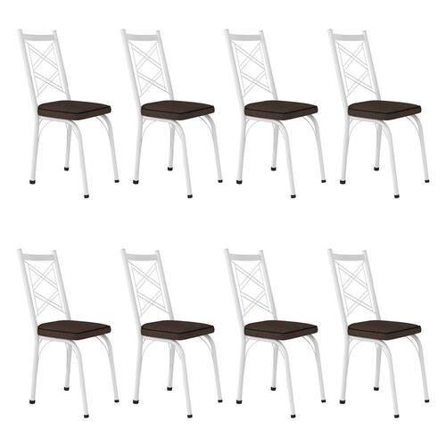 Kit 8 Cadeiras de Cozinha Delaware Estampado Imbuia Pés de Ferro Branco - Pallazio - Cinza