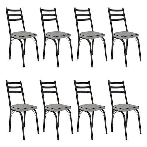 Kit 8 Cadeiras De Cozinha Luisiana Estampado Grafiato Pés De Ferro Preto - Pallazio