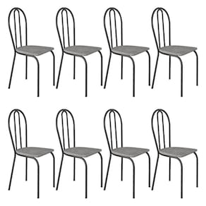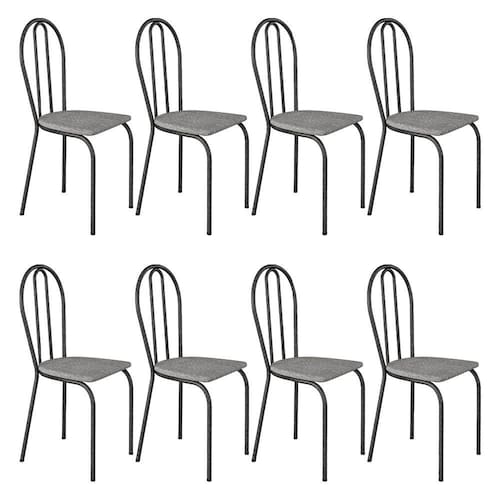 Kit 8 Cadeiras de Cozinha Texas Estampado Grafiato Pés de Ferro Cromo Preto - Pallazio