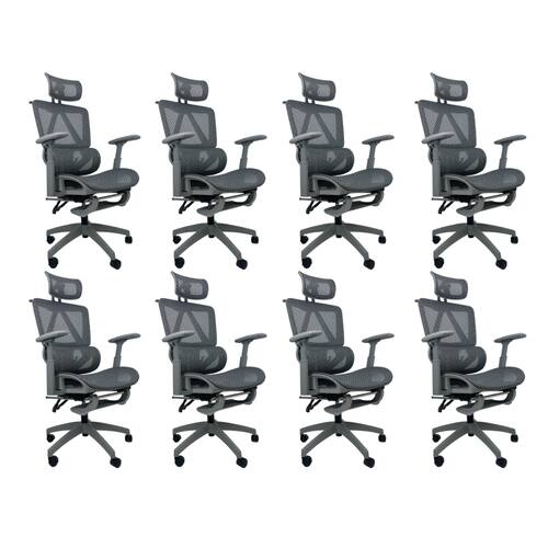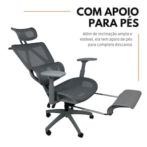 A limpeza pode ser realizada com um pano úmido e detergente neutro, garantindo a preservação do acabamento em Tela Mesh Nylon e a durabilidade da cadeira.