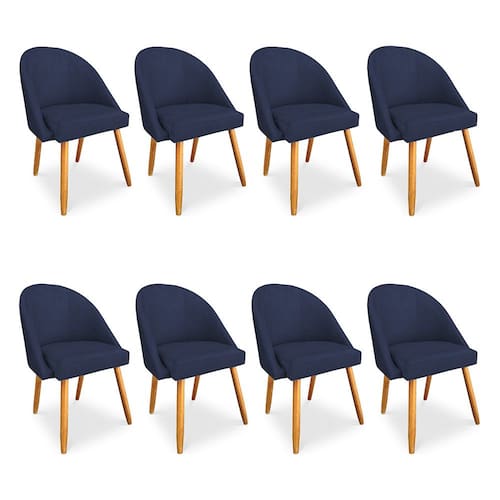 Kit 8 Cadeiras de Jantar Bela Veludo Azul Marinho Pés Palito Castanho - Pallazio