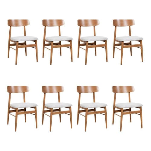 AS IMAGENS SÃO MERAMENTE ILUSTRATIVAS E PODEM SOFRER VARIAÇÕES DE COR E PEQUENOS DETALHES DE ACORDO COM O SEU MONITOR, ILUMINAÇÃO DO AMBIENTE E ATÉ MESMO A SUA PERCEPÇÃO 8 Cadeiras de Jantar Delta Estrutura AÃo Carbono Laminado Natural com Estofado Linho Cru