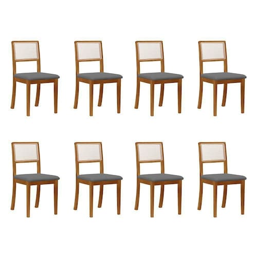 Kit 8 Cadeiras De Jantar Estofada Veludo Rubi Madeira Maciça cinza