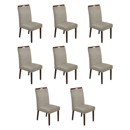 Kit 8 Cadeiras De Jantar Madeira Maciça Natural Premium Heloísa Linho Bege