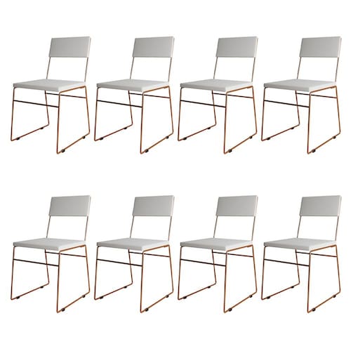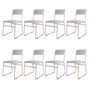 Kit 8 Cadeiras de Jantar Málaga Assento Corino Branco Base Cobre