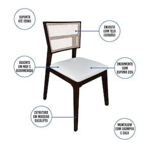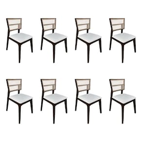 Kit 8 Cadeiras de Jantar Manuela em Tela Assento Facto Branco Base em Madeira Maciça - Castanho
