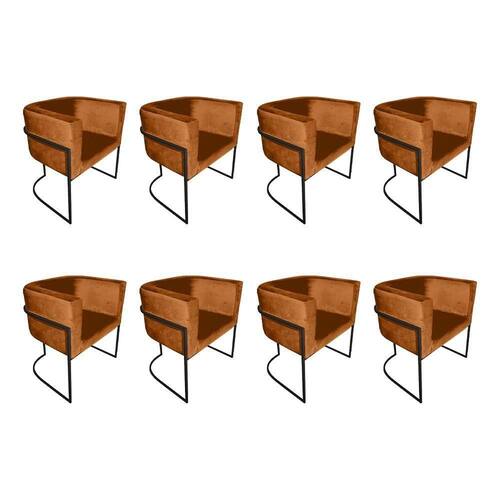 AS IMAGENS SÃO MERAMENTE ILUSTRATIVAS E PODEM SOFRER VARIAÇÕES DE COR E PEQUENOS DETALHES DE ACORDO COM O SEU MONITOR, ILUMINAÇÃO DO AMBIENTE E ATÉ MESMO A SUA PERCEPÇÃO VISUAL.Kit 8 Cadeiras De Jantar Premium Base De Ferro Preta Veludo Terracota