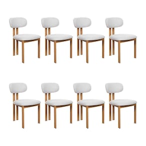 AS IMAGENS SÃO MERAMENTE ILUSTRATIVAS E PODEM SOFRER VARIAÇÕES DE COR E PEQUENOS DETALHES DE ACORDO COM O SEU MONITOR, ILUMINAÇÃO DO AMBIENTE E ATÉ MESMO A SUA PERCEPÇÃO 8 Cadeiras de Jantar Tulipa Estrutura AÃo Carbono Laminado Natural com Estofado Linho Cru