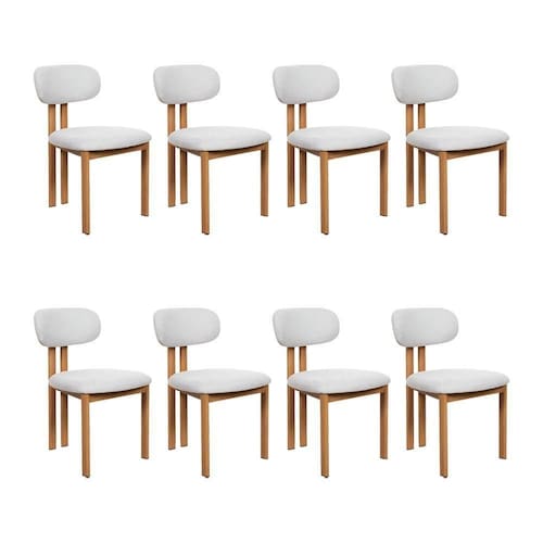 Kit 8 Cadeiras De Jantar Tulipa Estrutura Aço Carbono Laminado Natural Com Estofado Linho Cru