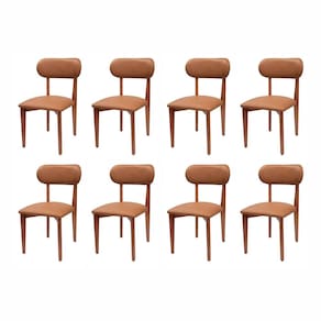 A decoração "clean" caiu no gosto de muitos decoradores e essa linda cadeira conseguiu unir esse conceito com sustentabilidade à um design que foi pensado para anatomia/ergonomia. Design, conforto e certificado de 100% de qualidade na mesma peça é o que não falta. Acabamento: Verniz Acabamento da Estrutura: Verniz Almofada do assento: Fixa Altura do assento até o chão: 45 cm Ambiente Principal: Sala de Jantar codigo_ean: 7900288239099 Cor: imbuia/Conhaque Cor do Produto: Imbuia/Conhaque Cor dos Pés: Marrom Dobrável: Não Enchimento do Assento: Espuma D-28 Enchimento do Encosto: Espuma D-28 Escala de Brilho: Semi-Brilho Estrutura do Assento: Madeira Maciça Estrutura do Encosto: Madeira/MDF Giratória: Não Itens Inclusos: 8 Cadeiras Linha ou Coleção: Liz Manual de Especificação Técnica: https://cdn2.madeiramadeira.com.br/atributo/marto-moveis/3228515-5851-17586281608855.pdf Manual de Montagem e Instalação: https://cdn2.madeiramadeira.com.br/atributo/marto-moveis/3228512-5851-17586281483355.pdf Marca: Espresso Móveis Material da Base: Madeira Maciça Eucalipto Material dos Pés: Madeira Maciça Material Principal: Madeira Maciça Necessita Montagem: Não Origem do Produto: Nacional Peso: 7 kg Possui Apoio para Braços: Não Possui Apoio Para os Pés: Não Possui Assento/Encosto Estofados: Possui Encosto e Assento Estofados Possui Espaldar: Não Possui Rodízio: Não Quantidade de Itens: 8 Recomendações de Uso, Manutenção e Limpeza: Para manter seu móvel novo por muito mais tempo, evite locais úmidos, mantenha-o distante de líquidos. Para limpá-lo com segurança utilize uma flanela seca sem produtos abrasivos, que por sua vez desgastam o produto. Revestimento do Assento: Madeira Maciça + Espuma D-28 + tecido couro sintético Revestimento do Encosto: Madeira Maciça e MDF + Espuma D-28 + tecido couro sintético Tamanho do Produto: 83X46X56 Tipo de Assento: Fixo Tipo de Certificado: SENAI Tipo de Encosto: Fixo Tipo de Madeira Maciça: Eucalipto