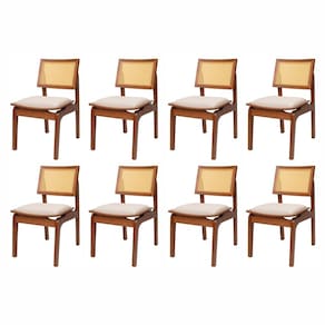 Os produtos são testados e avaliados constantemente, com pesos e medidas reais. Fornecemos garantia total contra qualquer defeito ou vício de fabricação. Cada modelo possui uma proposta, uma característica única, algo que torna cada item especial. ?Com atenção especial nos ângulos e ergonomia. Acabamento: Verniz Acabamento da Estrutura: Verniz Almofada do assento: Fixa Altura do assento até o chão: 45 cm Altura dos Pés: 45 cm Ambiente Principal: Sala de Jantar Apoio para Braços Estofado: Não Cor: Imbuia/Cru Cor do Produto: Imbuia/Cru Cor dos Pés: Marrom Dobrável: Não Enchimento do Assento: Espuma D-28 Escala de Brilho: Semi-Brilho Estrutura do Assento: MADEIRA MACIÇA TAUARI Estrutura do Encosto: MADEIRA MACIÇA TAUARI Giratória: Não Informações Complementares: * Estrutura 100% de madeira Maciça Tauari* Encosto com rattan natural* Suporta 120 kg* Cadeira vai 100% montada* Todos os nossos produtos de madeira vão com sapatilha de silicone nos pés Itens Inclusos: Conjunto com 8 cadeiras de Madeira 100% Maciça Tauari e Rattan Natural com Assento Estofado Daren Living Outdoor Linha ou Coleção: LIVING OUTDOOR Manual de Especificação Técnica: https://product-hub-prd.madeiramadeira.com.br/925412/documents/a9570070-996f-4ced-9a12-8bdbfc724f49230838658511725720157407.pdf Manual de Montagem e Instalação: https://product-hub-prd.madeiramadeira.com.br/925412/documents/460d99ea-de90-43e2-a65c-8039882fb04b2308385585117257201521291.pdf Material da Base: Madeira Maciça Material dos Pés: Madeira Maciça Material Principal: Madeira Maciça Necessita Montagem: Não Origem do Produto: Nacional Peso: 6,500 kg Possui Apoio para Braços: Sim Possui Apoio Para os Pés: Não Possui Rodízio: Não Quantidade de Itens: 8 Recomendações de Uso, Manutenção e Limpeza: Para a limpeza recomendamos o uso de pano levemente umedecido com água, limpo para evitar riscos, evitar uso de álcool, óleos, cera e produtos que podem agredir o acabamento do produto. Revestimento do Assento: LINHO Revestimento do Encosto: RATTAN NATURAL Tamanho do Produto: 80X53X60 Tipo de Assento: Fixo Tipo de Certificado: SENAI Tipo de Encosto: Fixo Tipo de Madeira Maciça: Tauari